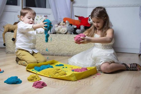Кинетический песок не теряет своих свойств: если его намочить, ничего не произойдет, после сушки он опять станет прежним; его можно промывать при необходимости. Хранить песок удобно в пластиковых контейнерах с крышкой, чтобы смесь ни пылилась.