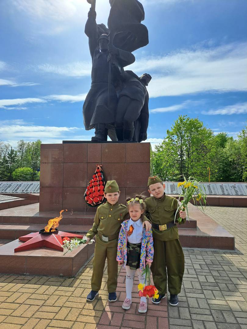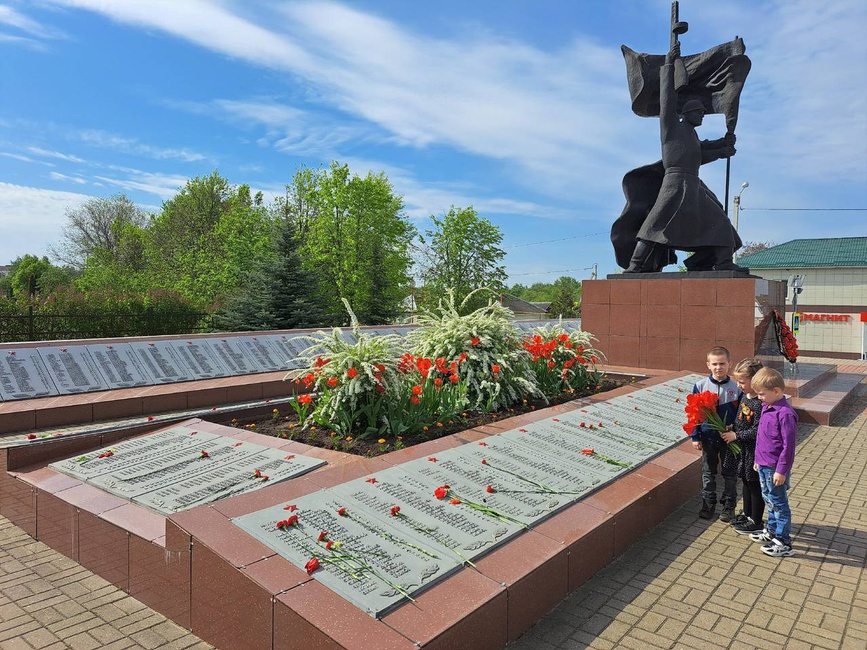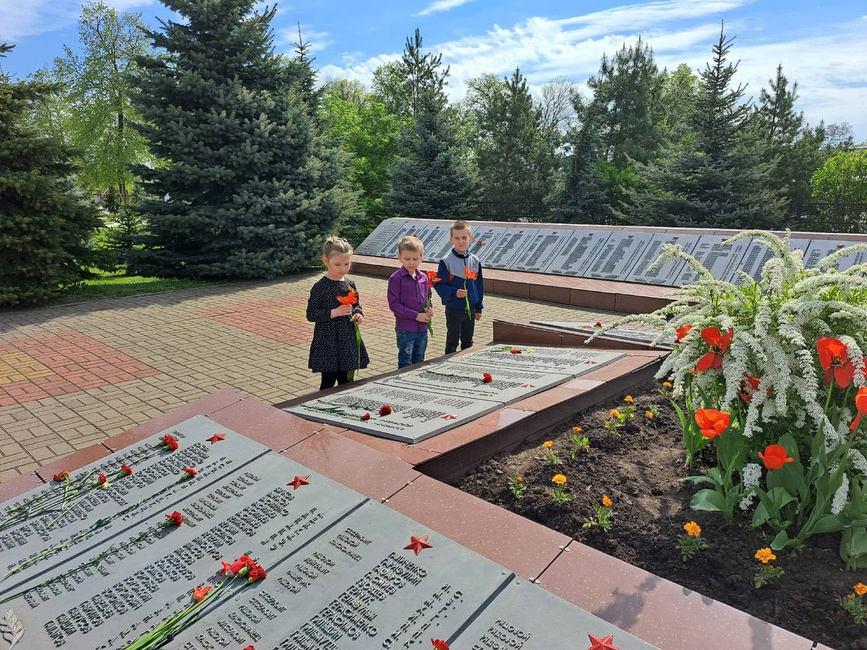 Дети возложили цветы к памятнику погибшим войнам во время Великой Отечественной войны, отдав дань уважения всем солдатам, не вернувшимся с войны,всем кто погиб в боях.