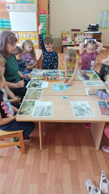 Сегодня с детьми младшей разновозрастной группы была проведена беседа об освобождении Томаровки от фашиских захватчиков. Дети послушали стихотворение И.Чернухина "За холмом", рассмотрели иллюстрации пямятных мест Томаровки, совершили виртуальную экскурсию по поселку. Дети поделились своими рассказами о том, как они возлагали цветы погибшим солдатам вместе со своими родителями. Педагоги: Чумакова Л.А., Моренко Е.А.